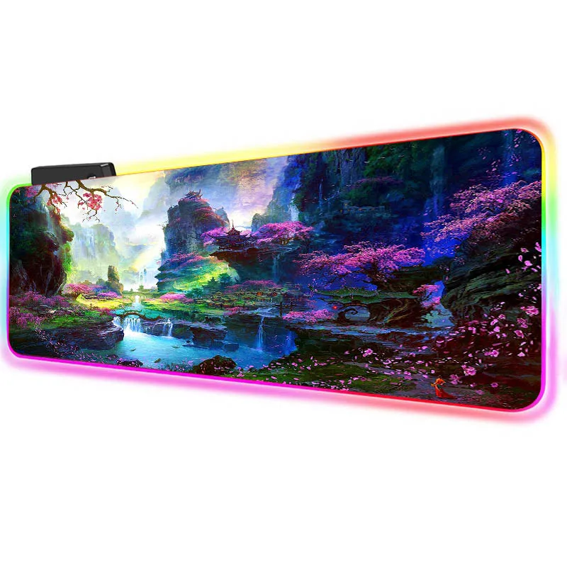 Clearance XGZ Flower Forest Landscape RGB Large Gaming Mouse Pad Gamer Led Computer Mousepad Big with Backlig